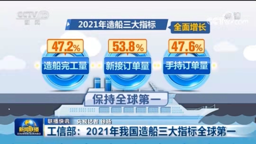 2021年我國造船三大指標全面增長 國際市場份額提升保持全球領先