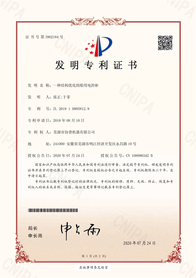 發(fā)明專利證書