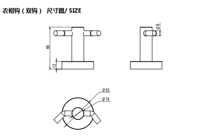 品名:不銹鋼衣帽鉤 (雙鉤)